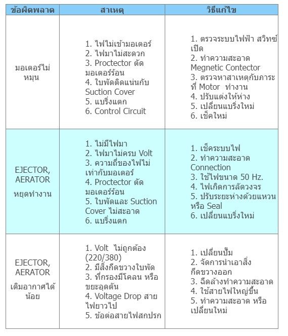 8. เหตุขัดข้องและวิธีแก้ไข EJECTOR, AERATOR