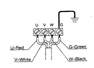 3.3 เนื่องจากมอเตอร์ชนิดนี้ เป็นชนิดที่ต้องแช่น้ำตลอดเวลา ดังนั้นจำเป็นอย่างยิ่งที่จะต้องต่อสายดิน (Ground) สายดินของเครื่องเติมอากาศจะเป็นสีเขียว