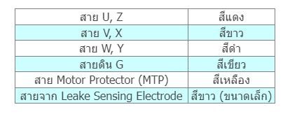 3.1 การต่อขั้วสายไฟ ตามตารางด้านล่าง สายไฟจากตัวมอเตอร์จะเป็นดังนี้