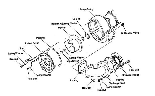 - ดังรูป เป็นแนวทางในการถอดชุด IMPELLER, SUCTION COVER ในการเอาสิ่งสกปรกออก