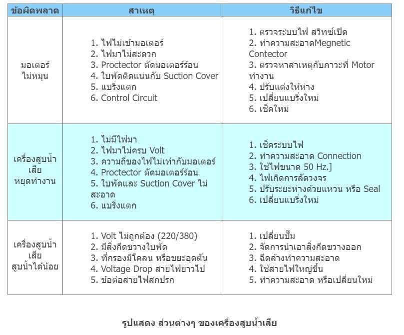 8. เหตุขัดข้องและวิธีแก้ไขเครื่องสูบน้ำเสีย